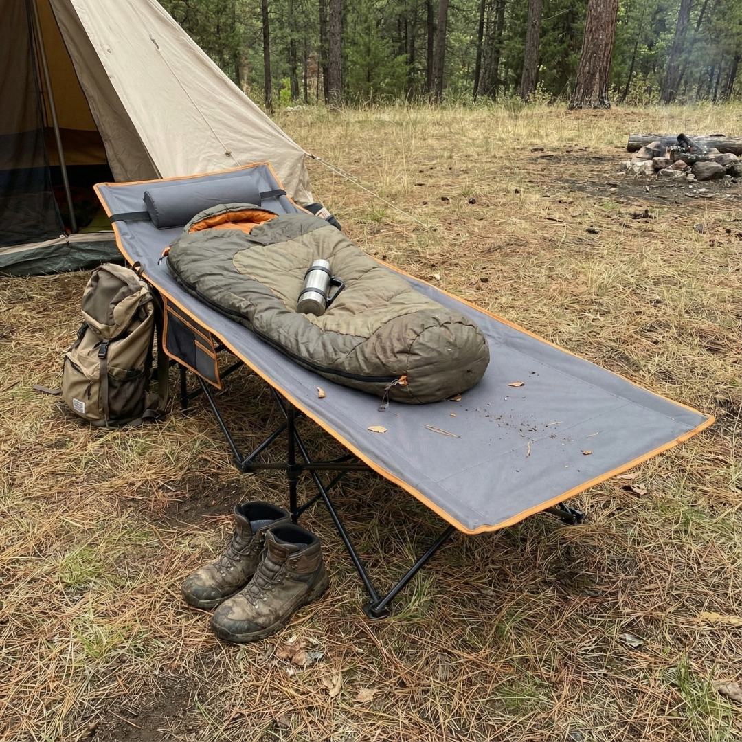 Sleeping off the ground helps improve airflow, keeps you away from moisture, insects, and cold surfaces, and often leads to better sleep quality. Many campers find elevated cots significantly more comfortable than sleeping pads or ground sleeping bags.