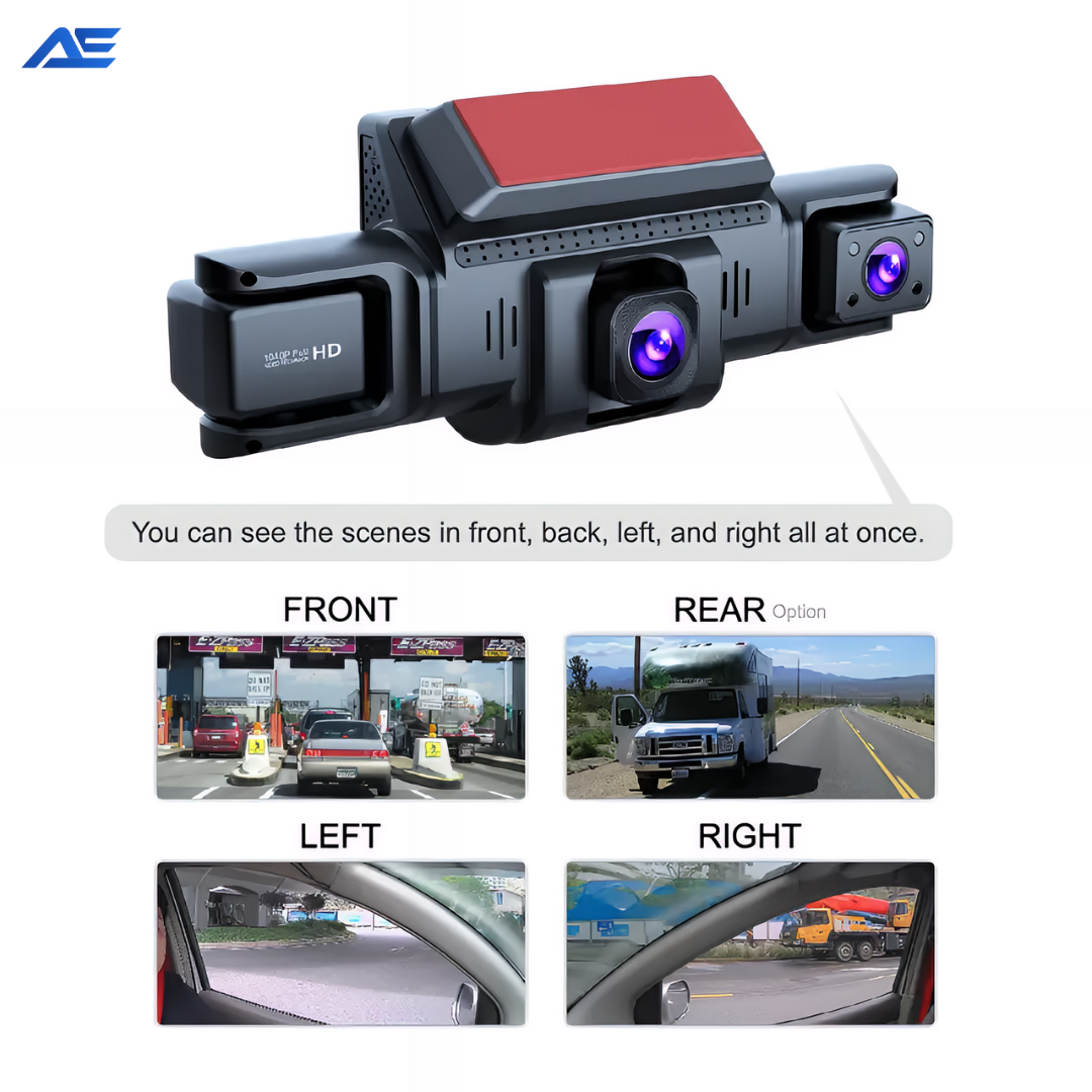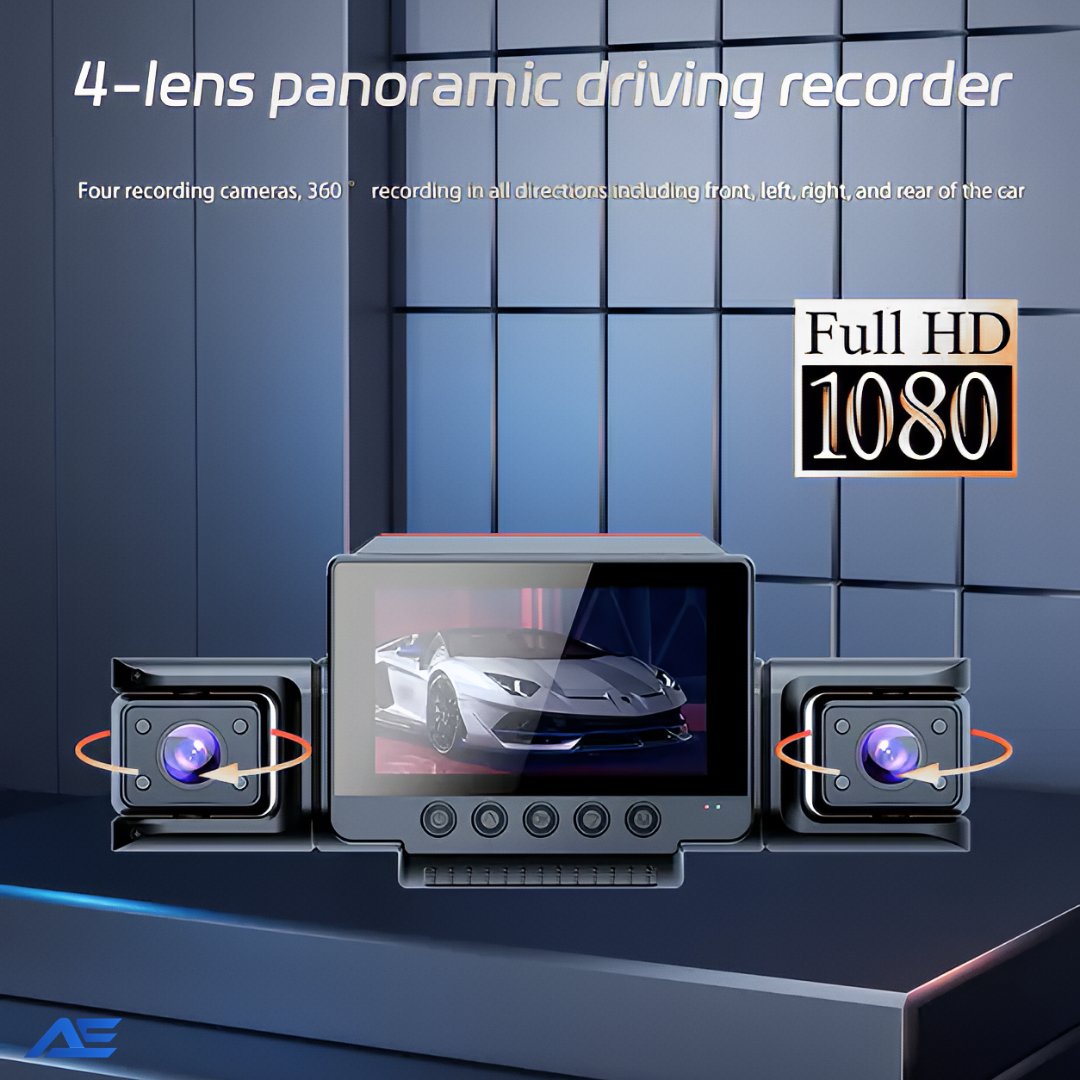 A 4-channel dash cam records footage from four different angles at the same time, typically covering the front, rear, and interior or side views of the vehicle. This setup helps eliminate blind spots and provides a complete visual record of everything happening around and inside your car during driving or parking.