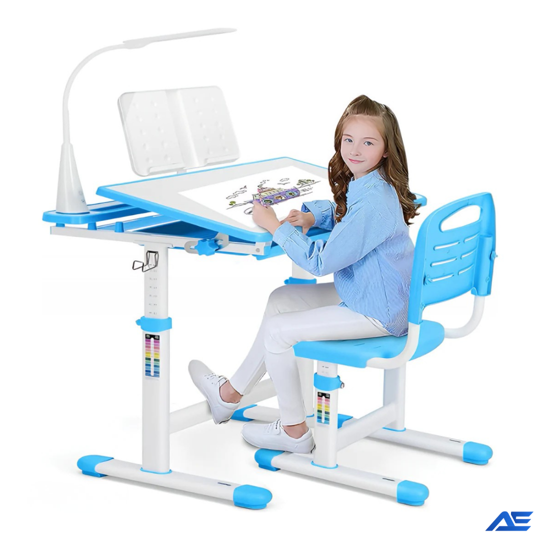 Height-adjustable desk and chair grow with your child, encouraging correct posture and reducing neck and back strain during daily study time.