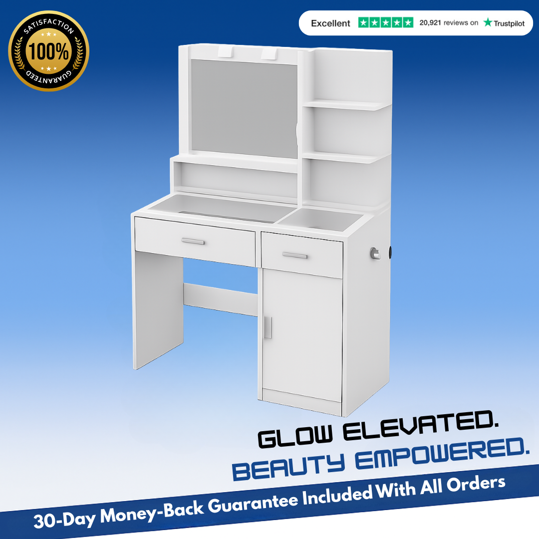 Glowra offers multiple smooth-glide drawers that provide generous storage space. The compartments are ideal for organizing makeup, skincare, hair tools, and accessories, helping keep your vanity surface neat and clutter-free.