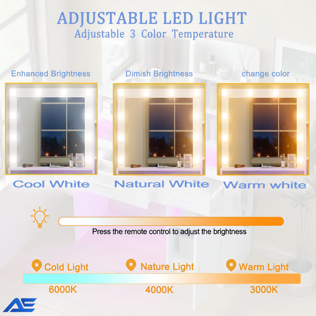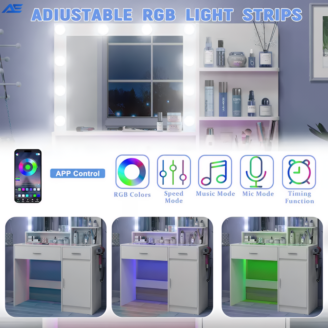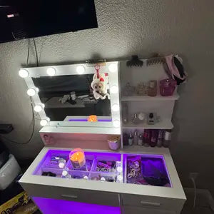 This vanity exceeded my expectations in every way. The mirror lighting is bright, adjustable, and perfect for makeup at any time of day. The RGB drawer lighting adds such a modern touch, and everything feels solid and well crafted. It looks beautiful and functions flawlessly.