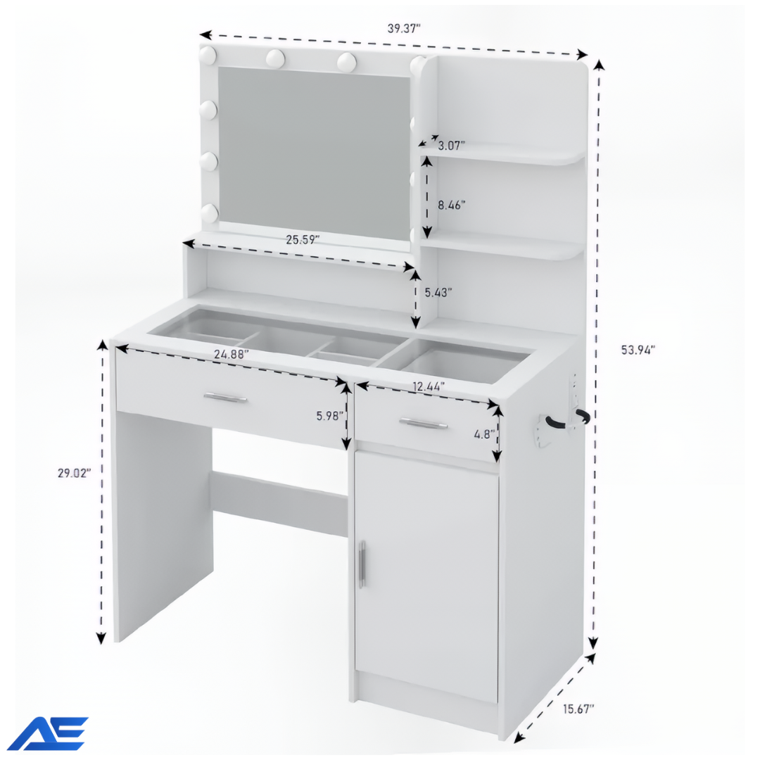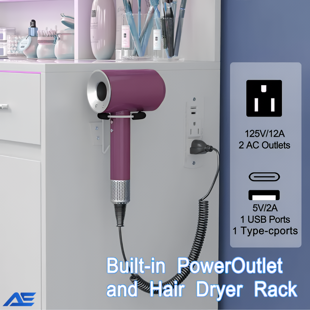 • This vanity is both gorgeous and practical. I love having USB ports and a power outlet built in—it keeps my space clean and organized. The mirror lighting is even and flattering, and the storage fits all my makeup perfectly. Worth every penny.