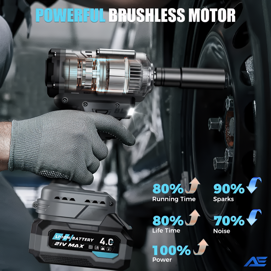 This cordless impact wrench is designed for heavy-duty tasks such as removing lug nuts, suspension bolts, and rusted fasteners on cars, SUVs, trucks, and trailers. It’s also suitable for workshop, garage, and roadside use where high torque is required.