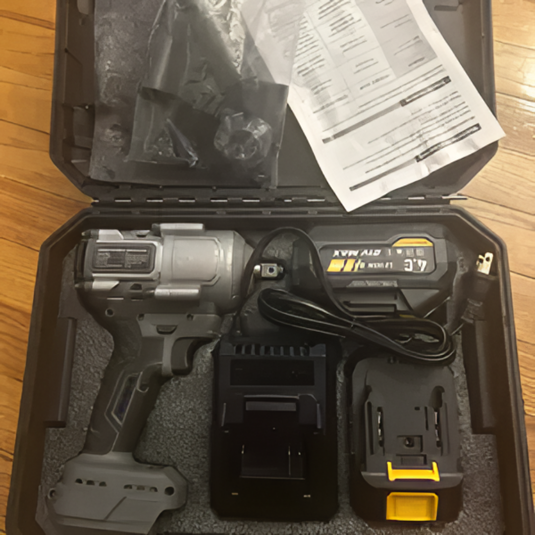 • The first thing I noticed when opening the case was how solid everything felt. The impact wrench has a good weight to it, not cheap or plasticky, and the batteries lock in firmly. The case layout is clean and organized, which makes storage easy.
