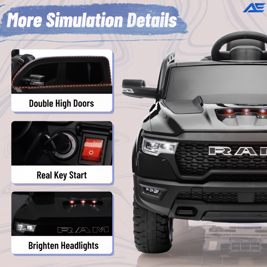 Absolutely. The truck has a5-point seat belt,4-wheel suspension, andsoft start technologyto ensure a smooth, secure ride every time.