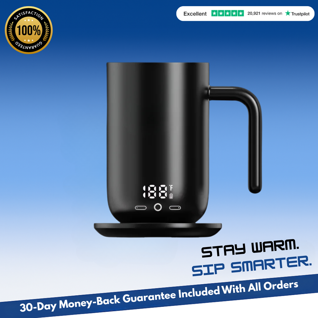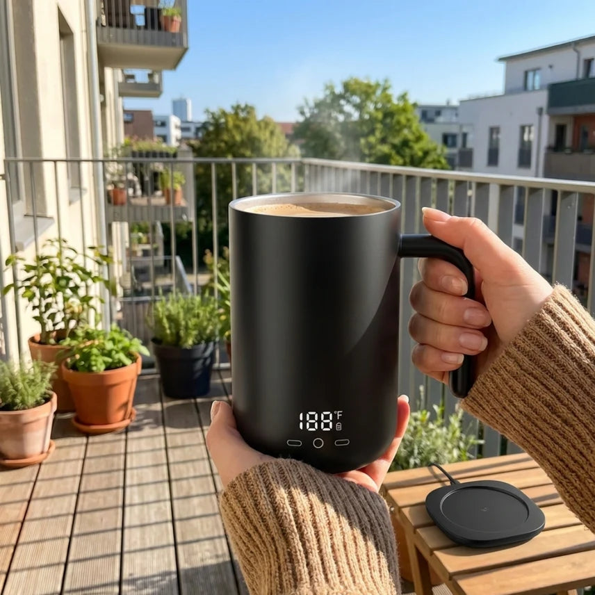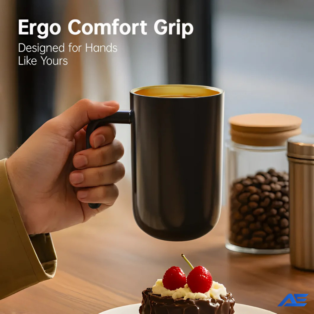 full charge keeps your drink warm for hours, perfect for long work sessions or relaxed mornings.