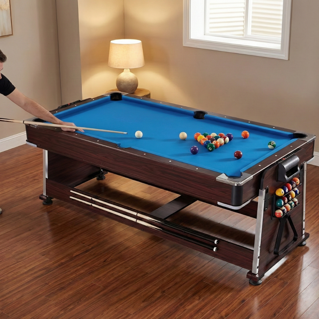 Yes, the 7-foot size is designed to balance professional gameplay with space efficiency. It fits comfortably in most home game rooms, basements, or entertainment areas without overwhelming the space. The convertible design also reduces the need for additional game tables.