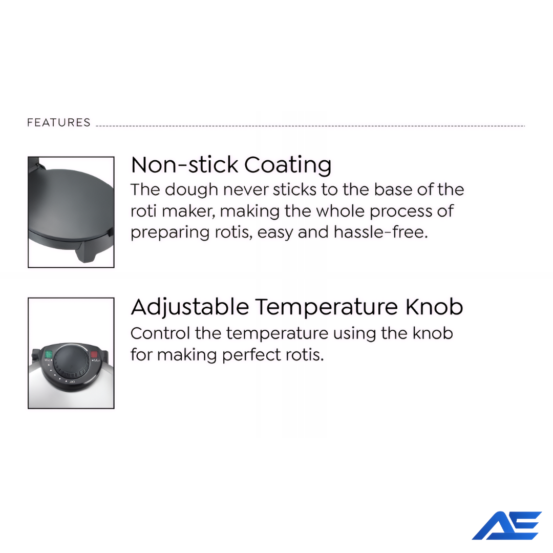 Designed to fit easily in any kitchen space, with simple controls that make roti preparation effortless for daily use.