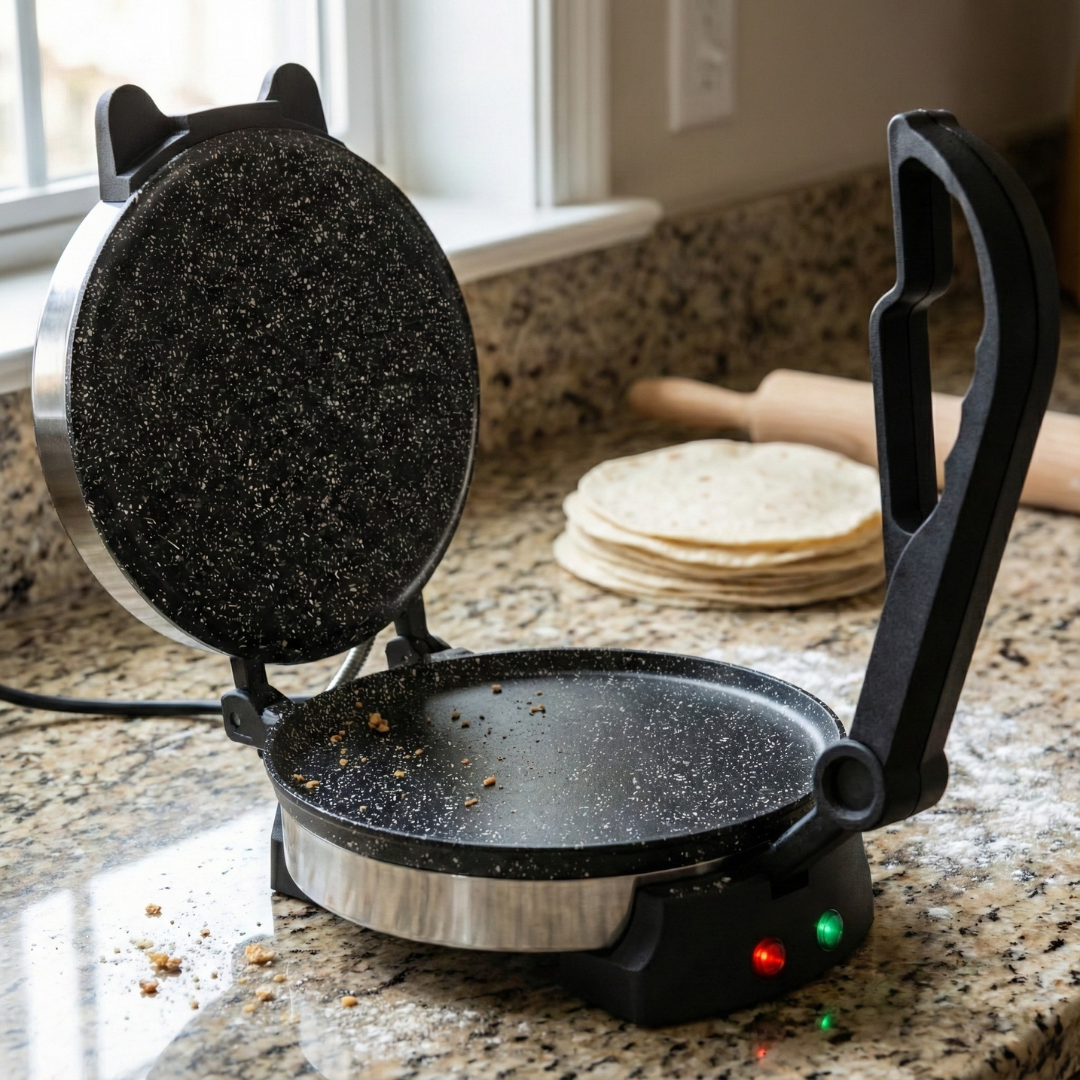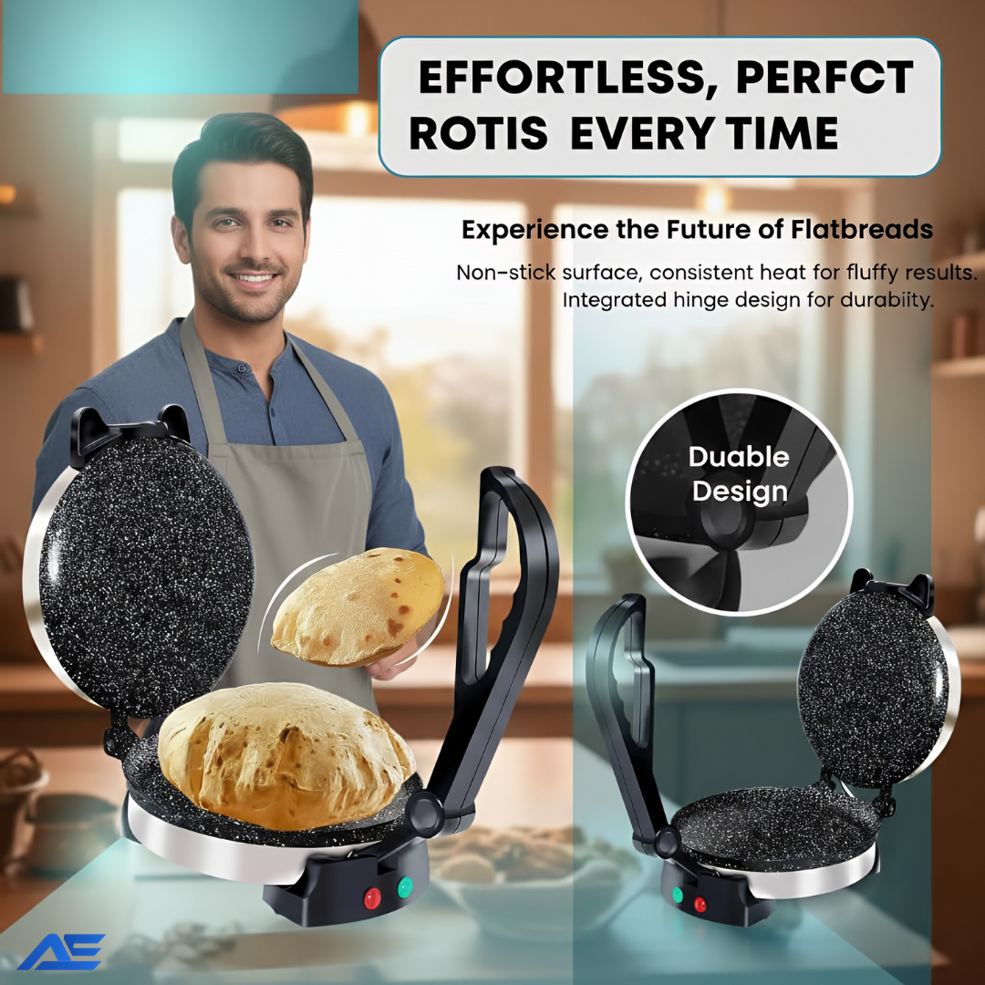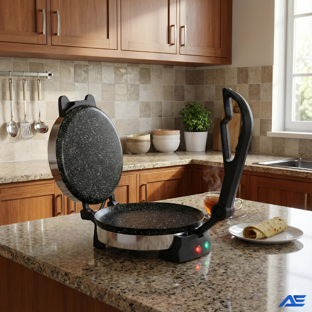 Yes, this roti maker is designed to be very beginner-friendly. The automatic operation eliminates the need for rolling pins or advanced cooking skills. Simply place the dough ball, close the lid, and allow the appliance to cook evenly. Even first-time users can make soft rotis confidently within minutes.