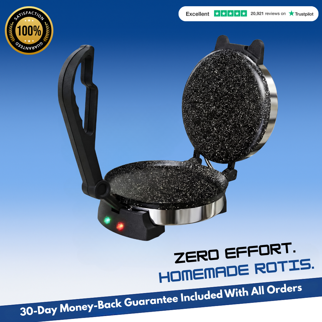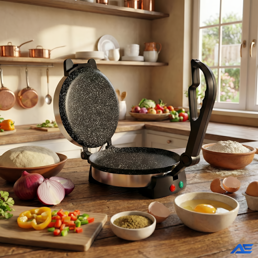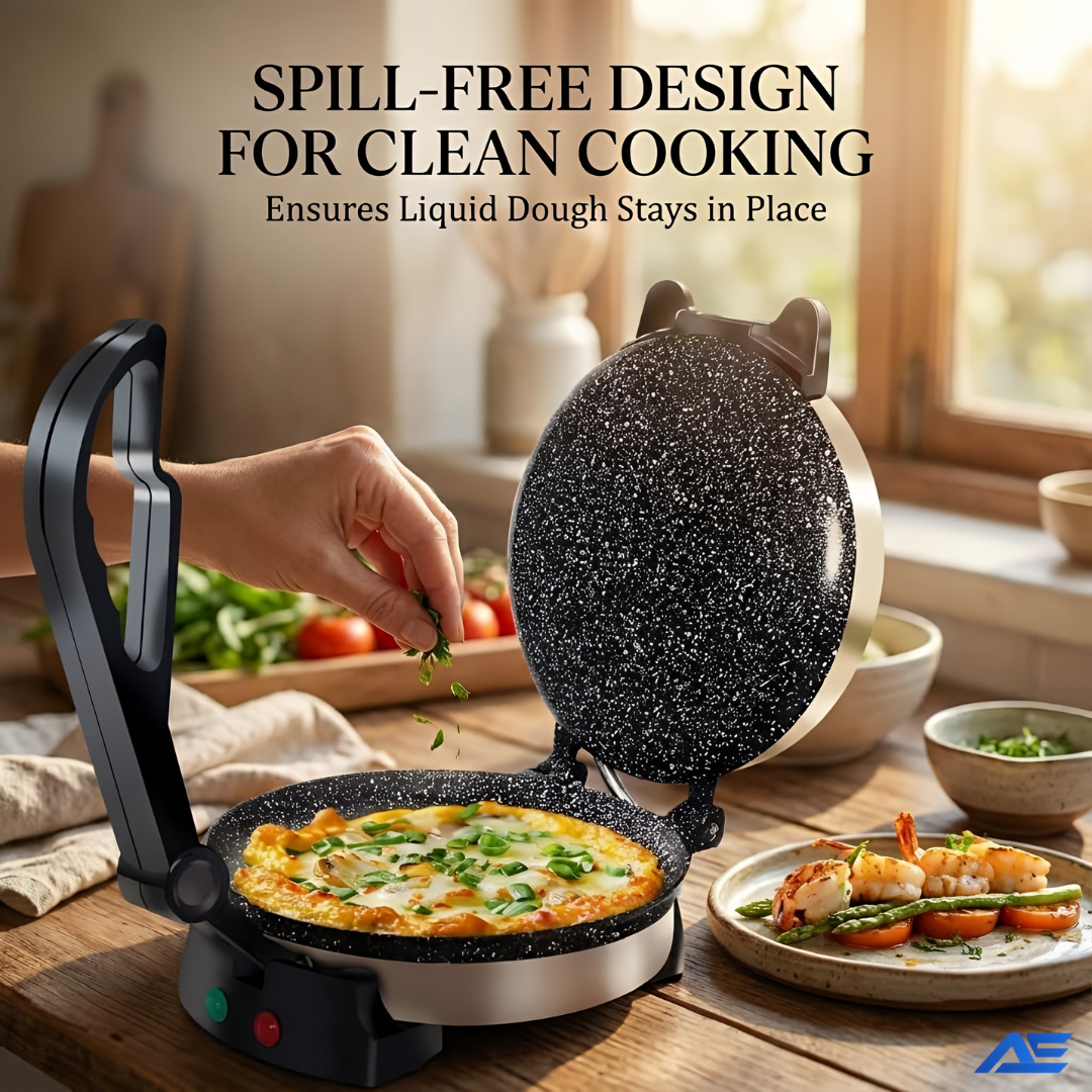 Yes, this roti maker is designed to be very beginner-friendly. The automatic operation eliminates the need for rolling pins or advanced cooking skills. Simply place the dough ball, close the lid, and allow the appliance to cook evenly. Even first-time users can make soft rotis confidently within minutes.