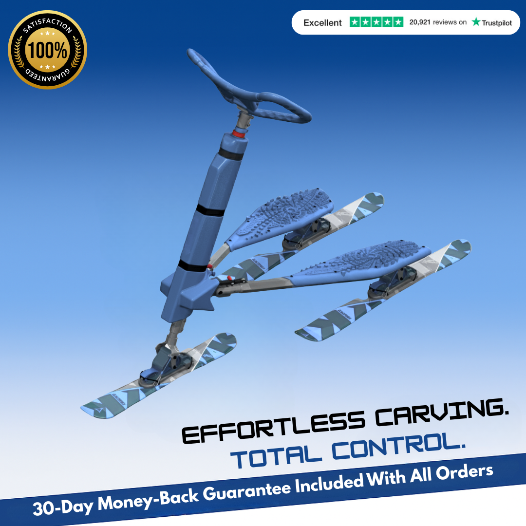 SkiX is a revolutionary stand-up snow riding machine that redefines how you experience winter sports, combining the carving sensation of skiing with the stability and control of a three-ski design. Unlike traditional skis, SkiX requires no ski boots or bindings—riders simply step on, hold the handlebars, and glide down the slope with confidence, making it accessible to beginners while still exciting for experienced riders.
