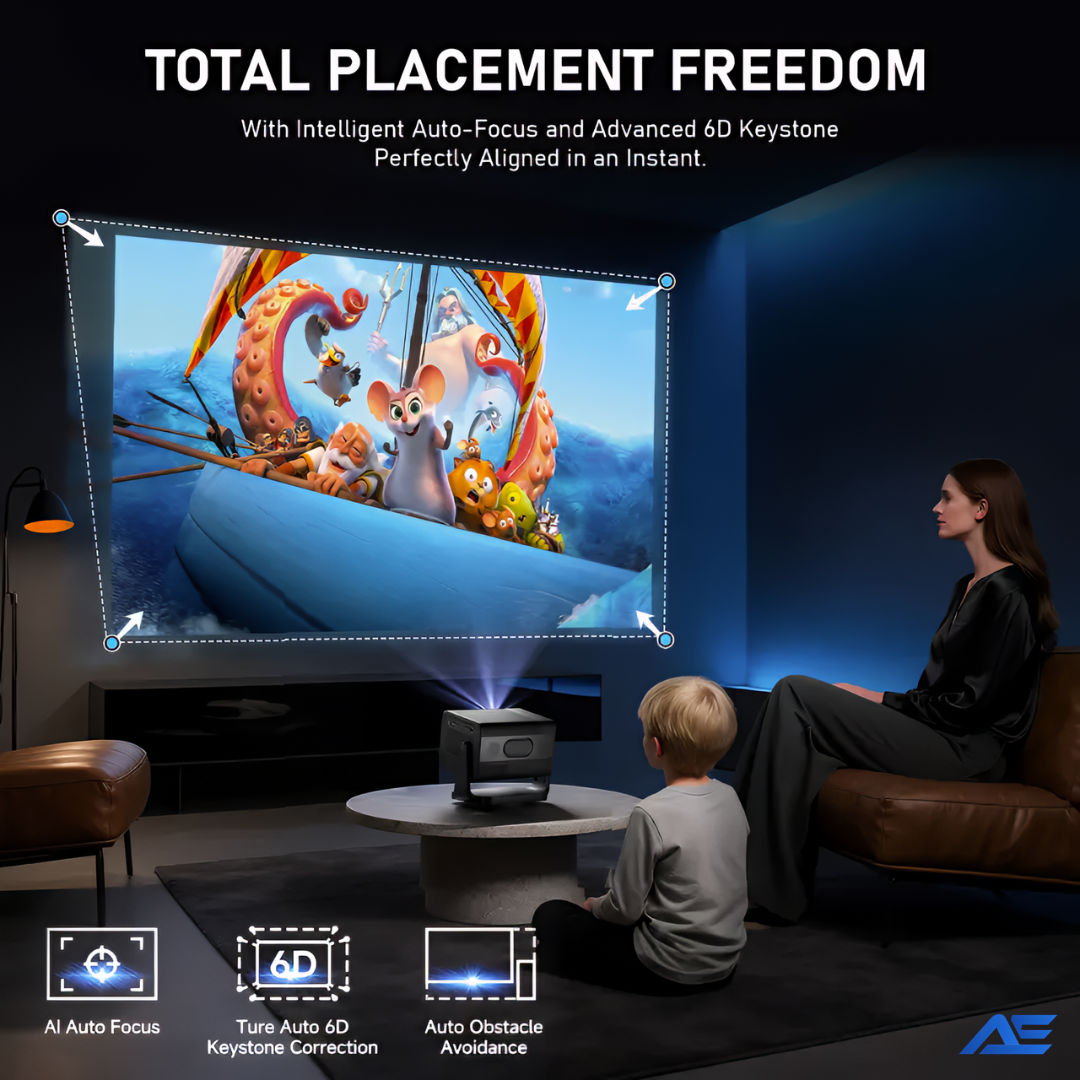 Auto-focus and auto-keystone correction instantly optimize the image, allowing you to start watching without manual adjustments or complicated setup.