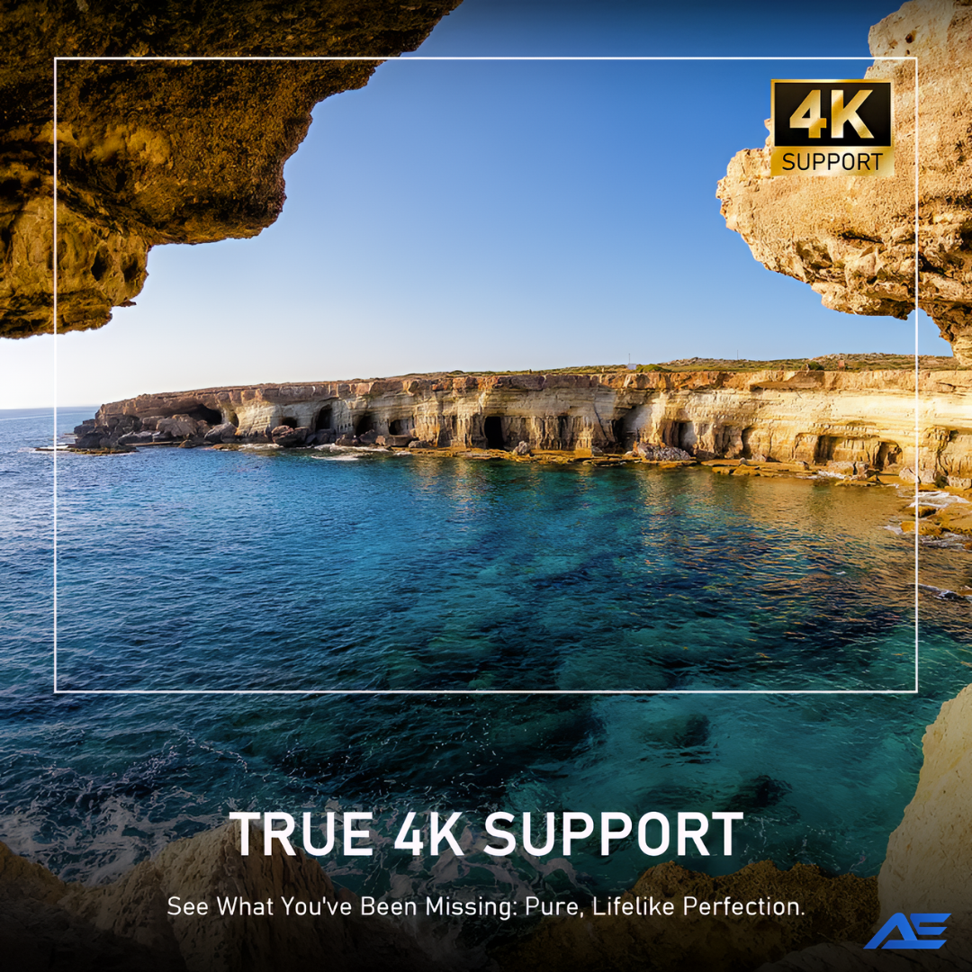 Enjoy stunning picture quality with native 1080P resolution and 4K support that brings every movie, show, and game to life with exceptional sharpness and vibrant color.